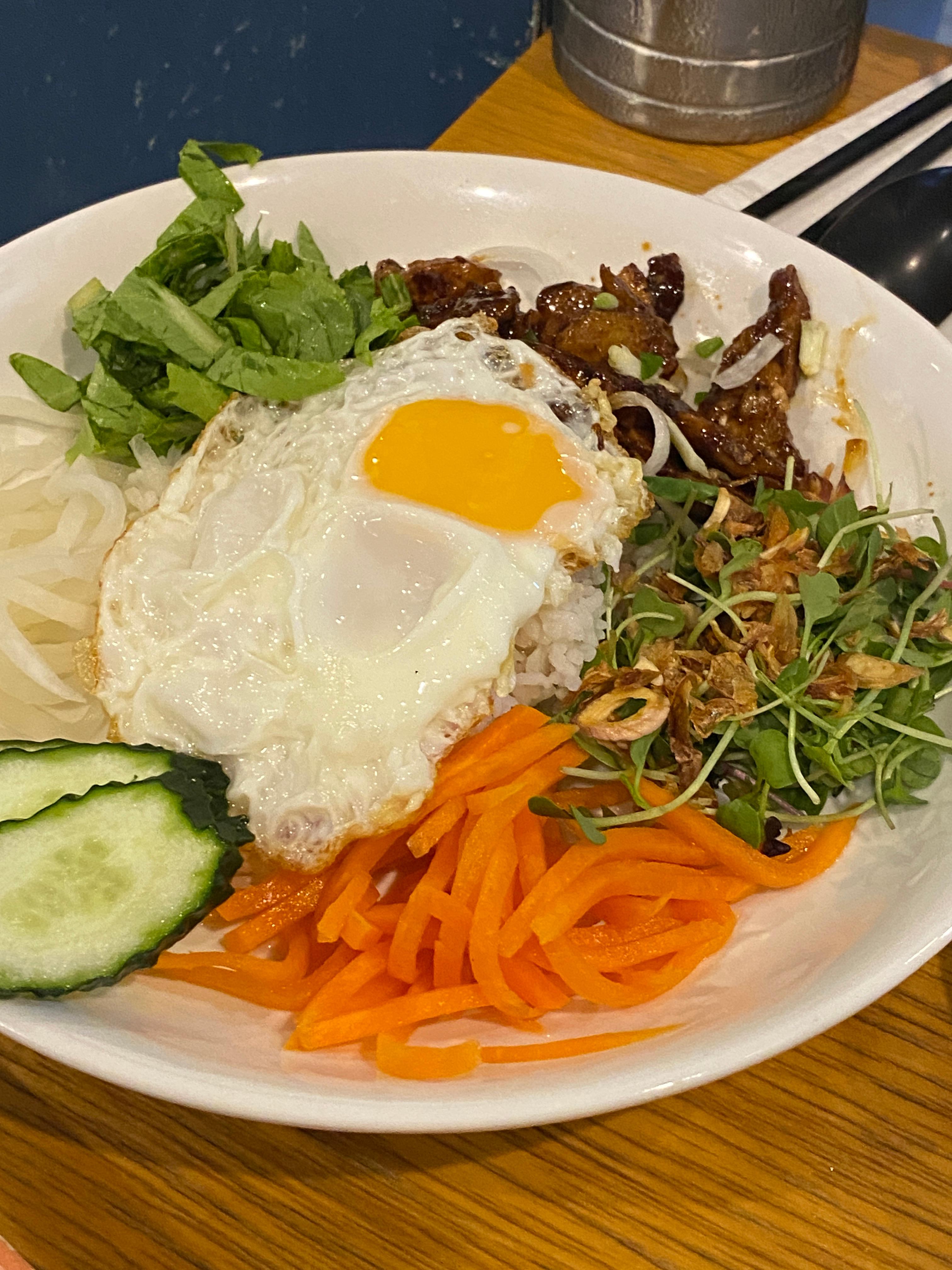 잘 구워진 돼지고기는 그냥 먹어도 맛있었지만, 이 음식의 화룡점정은 단연 계란 프라이였습니다. 반숙 노른자를 톡 터뜨려 밥과 고기에 쓱쓱 비벼 한입 크게 먹으니, 고소함과 단짠의 조화가 그야말로 완벽했습니다. 분짜가 상큼한 별미였다면, 껌승은 든든하고 만족스러운 식사 그 자체였죠.