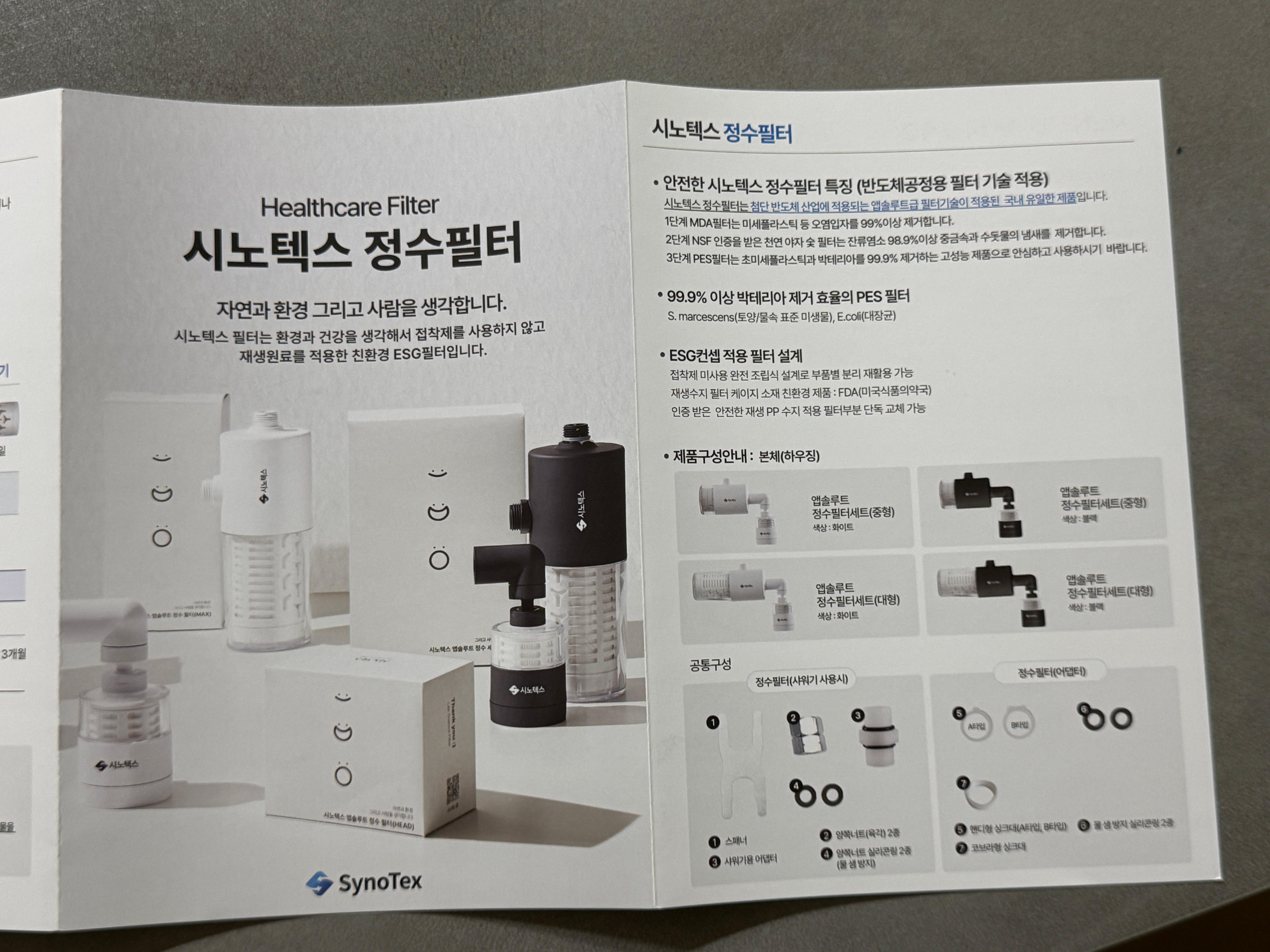 결심이 서자마자 저는 폭풍 같은 검색에 돌입했습니다. 세상에는 정말 수많은 샤워기 필터가 있더군요. 그저 녹물만 걸러준다는 기본적인 필터부터, 비타민 C를 첨가해 향기가 나는 필터까지. 그 수많은 제품들 속에서 제 눈을 사로잡은 제품이 있었으니, 바로 시노텍스(Synotex)의 헤파 필터 샤워기였습니다.