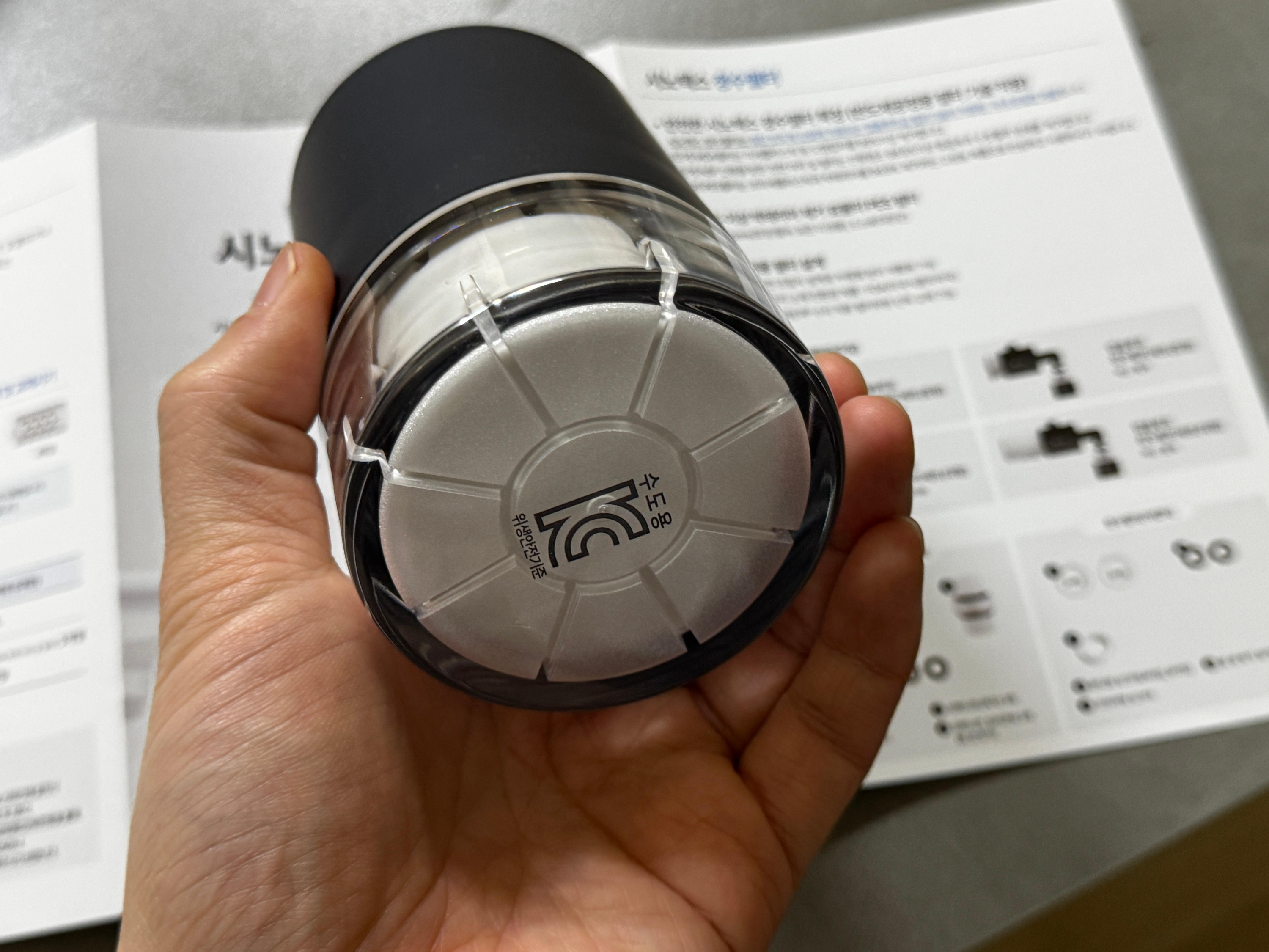 진짜 놀라웠던 것은 한 달 정도 사용한 뒤 필터를 교체할 때였습니다. 투명한 손잡이 속에 있던 새하얀 세디먼트 필터가 누런 갈색으로 변해 있었습니다. 매일 이 물로 씻었다는 생각에 소름이 돋더군요. "여보, 이것 좀 봐봐. 우리 집 수도관 상태가 이랬나 봐." 아내도 변해버린 필터 색깔을 보더니 "정말 바꾸길 잘했다"며 칭찬해주었습니다. 눈에 보이지 않던 불안함이 필터의 색깔 변화로 명확하게 보이니, 제품에 대한 신뢰는 더욱 커졌습니다.