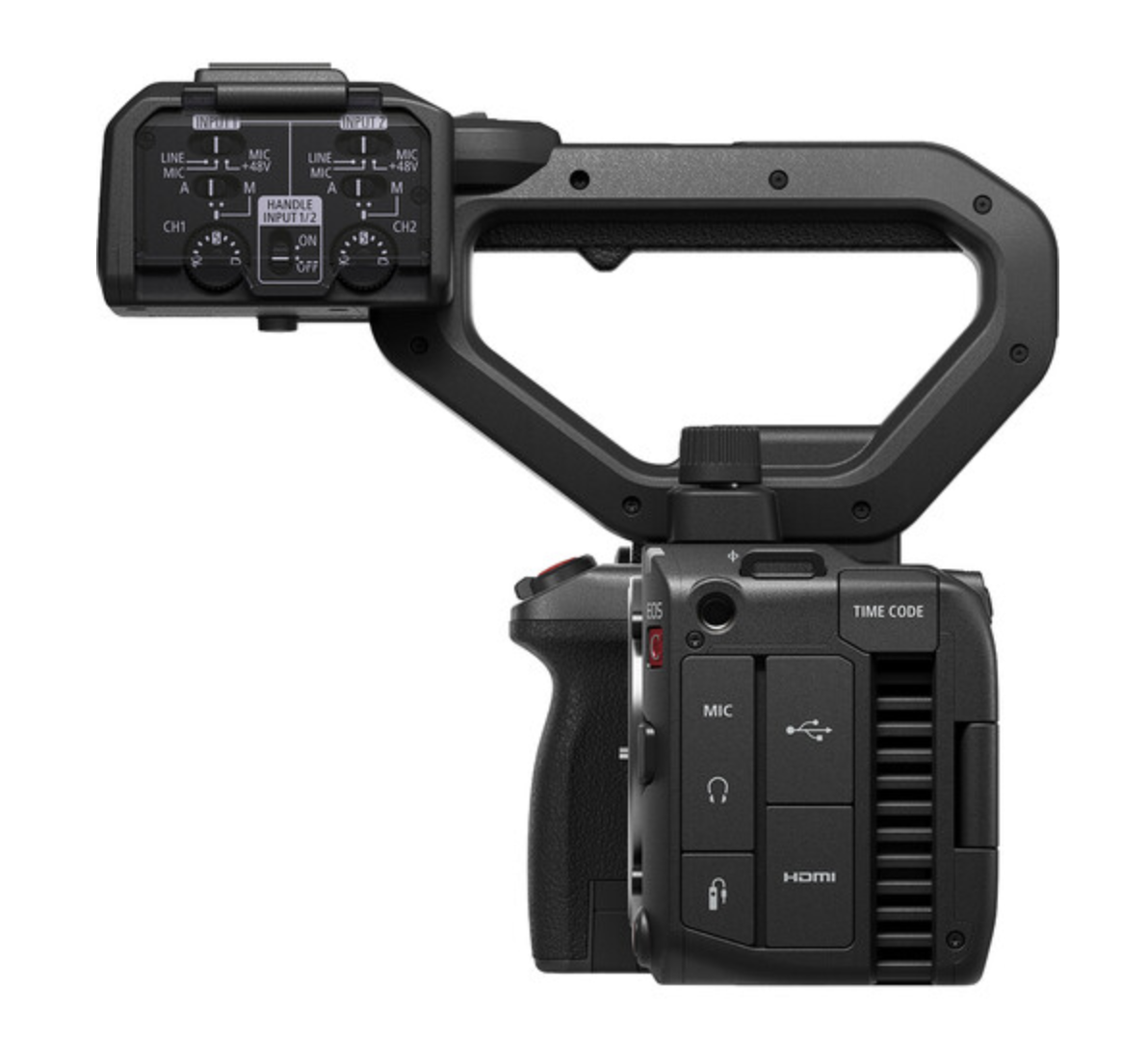 EOS C50은 하이브리드 카메라와 차별화되는 전문적인 입출력 단자를 갖출 것입니다.